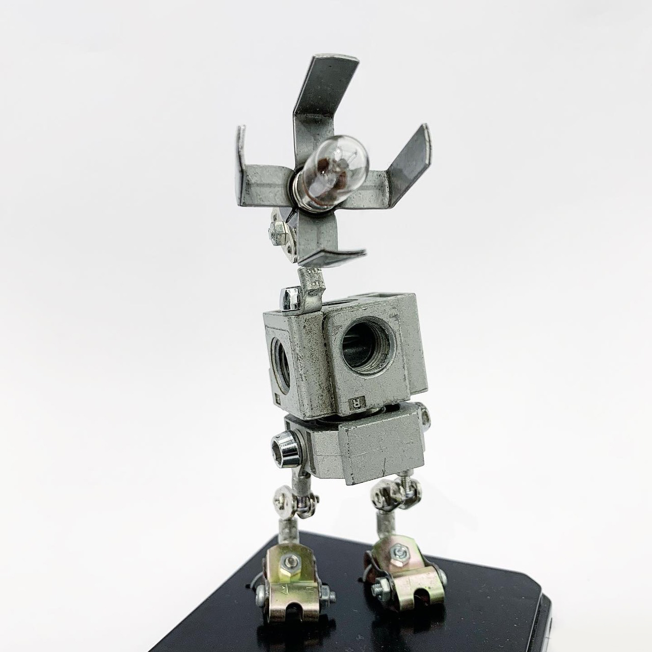 Shihirhira Daisuke使用工業和模型技術製作模型,不僅是外形,還包括內部結構。 所使用的零件是從一堆廢料中拾取的金屬零件,並且可以通過連接螺釘和螺母移動接縫,從而可以自由擺放姿勢。