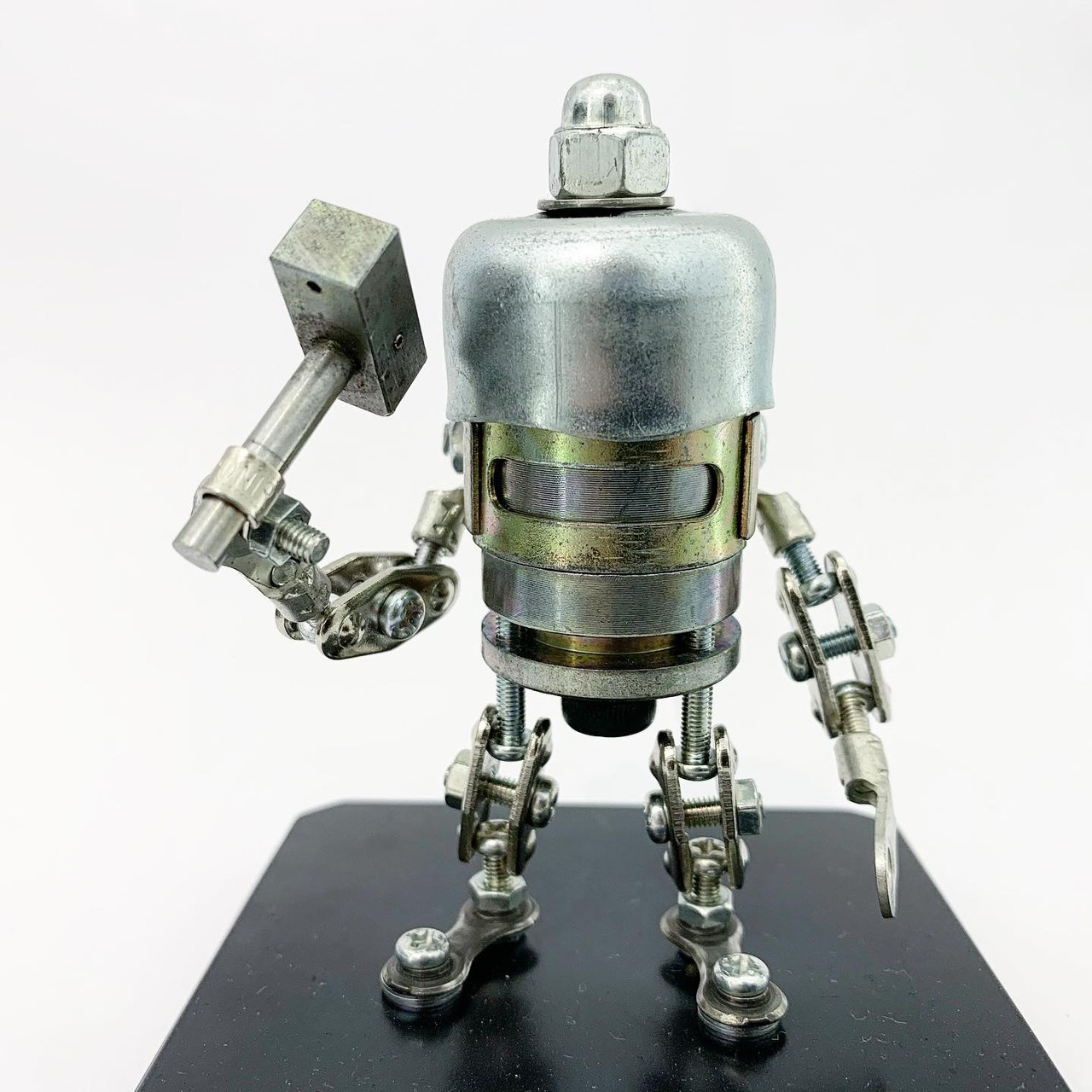 Shihirhira Daisuke使用工業和模型技術製作模型,不僅是外形,還包括內部結構。 所使用的零件是從一堆廢料中拾取的金屬零件,並且可以通過連接螺釘和螺母移動接縫,從而可以自由擺放姿勢。