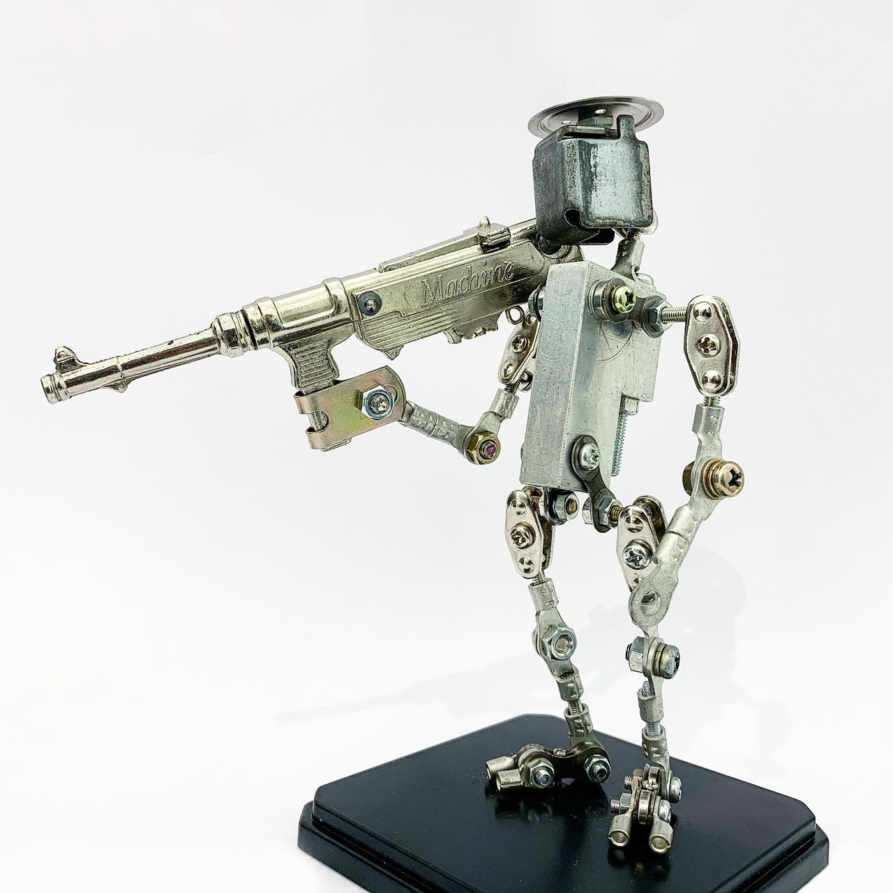 Shihirhira Daisuke使用工業和模型技術製作模型,不僅是外形,還包括內部結構。 所使用的零件是從一堆廢料中拾取的金屬零件,並且可以通過連接螺釘和螺母移動接縫,從而可以自由擺放姿勢。