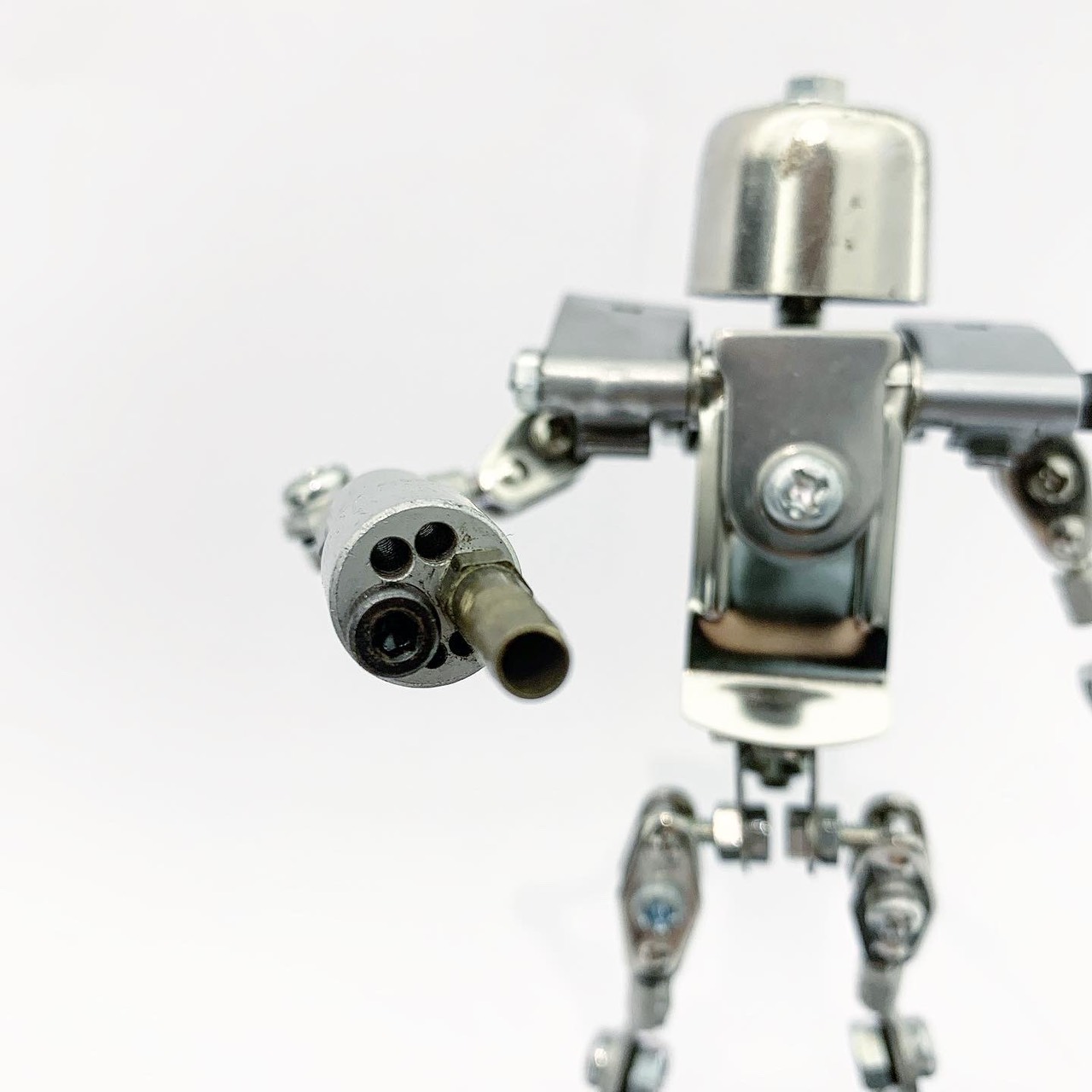 Shihirhira Daisuke使用工業和模型技術製作模型,不僅是外形,還包括內部結構。 所使用的零件是從一堆廢料中拾取的金屬零件,並且可以通過連接螺釘和螺母移動接縫,從而可以自由擺放姿勢。