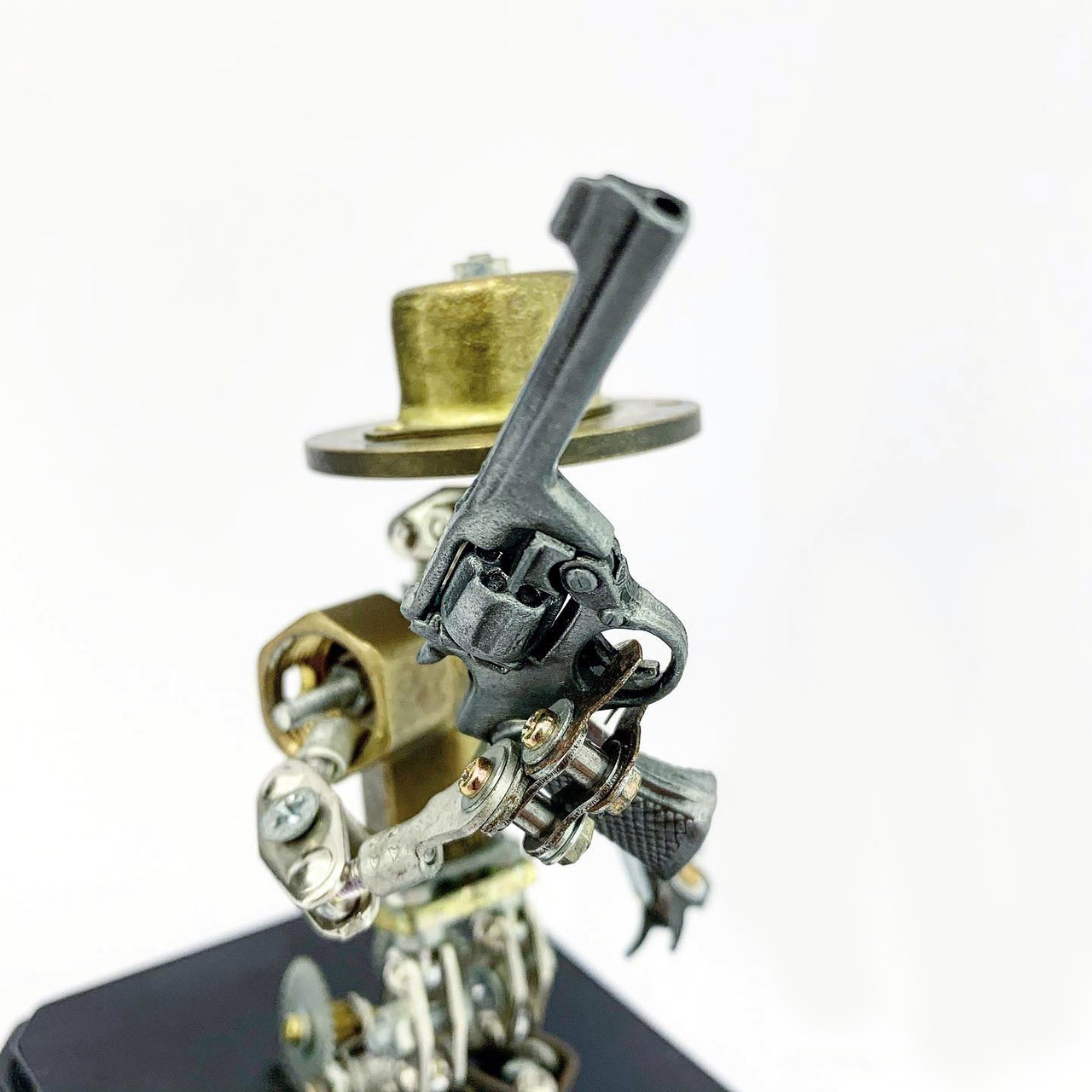Shihirhira Daisuke使用工業和模型技術製作模型,不僅是外形,還包括內部結構。 所使用的零件是從一堆廢料中拾取的金屬零件,並且可以通過連接螺釘和螺母移動接縫,從而可以自由擺放姿勢。
