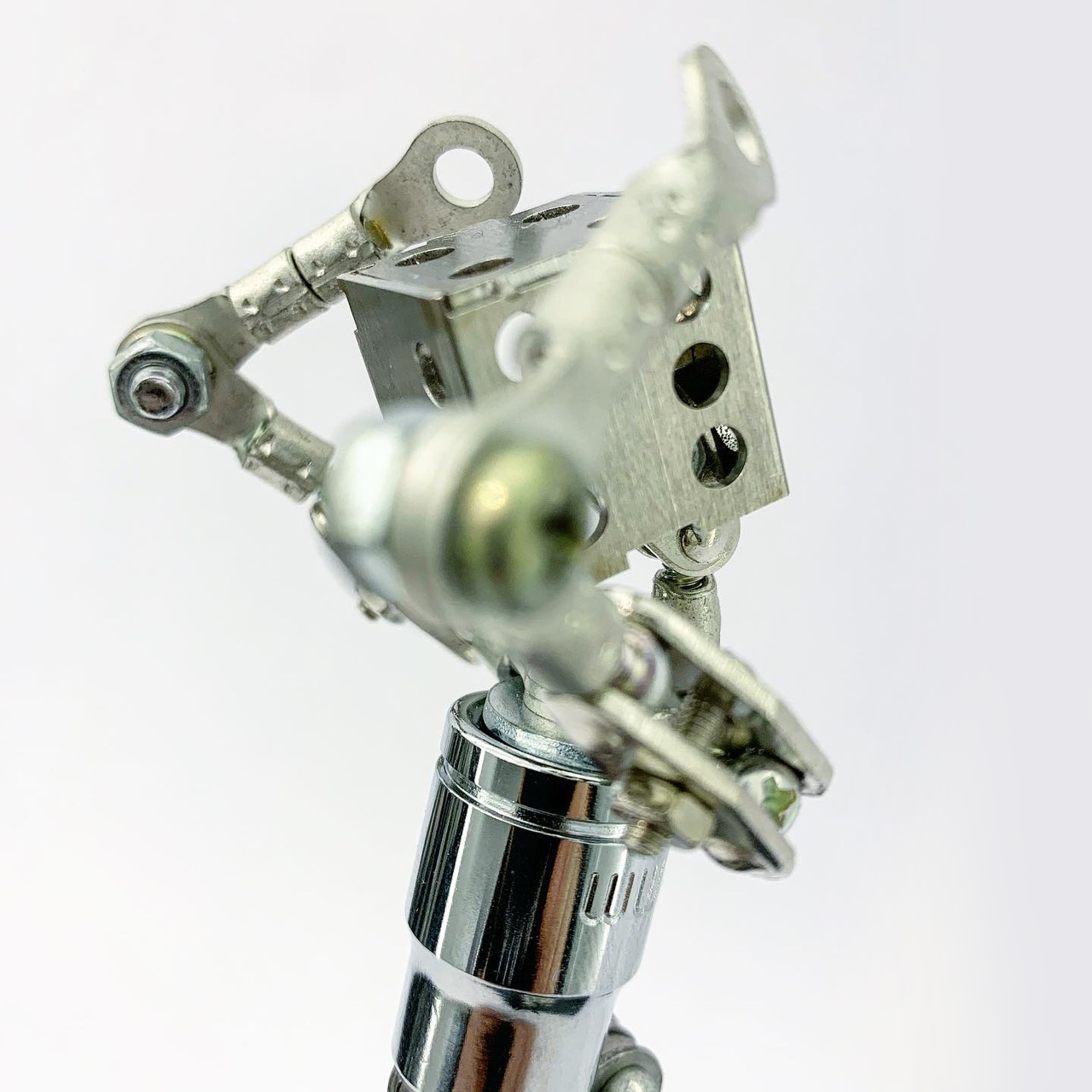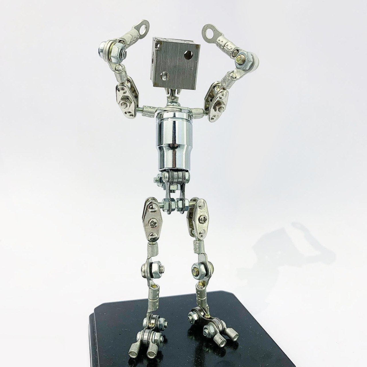 Shihirhira Daisuke使用工業和模型技術製作模型,不僅是外形,還包括內部結構。 所使用的零件是從一堆廢料中拾取的金屬零件,並且可以通過連接螺釘和螺母移動接縫,從而可以自由擺放姿勢。