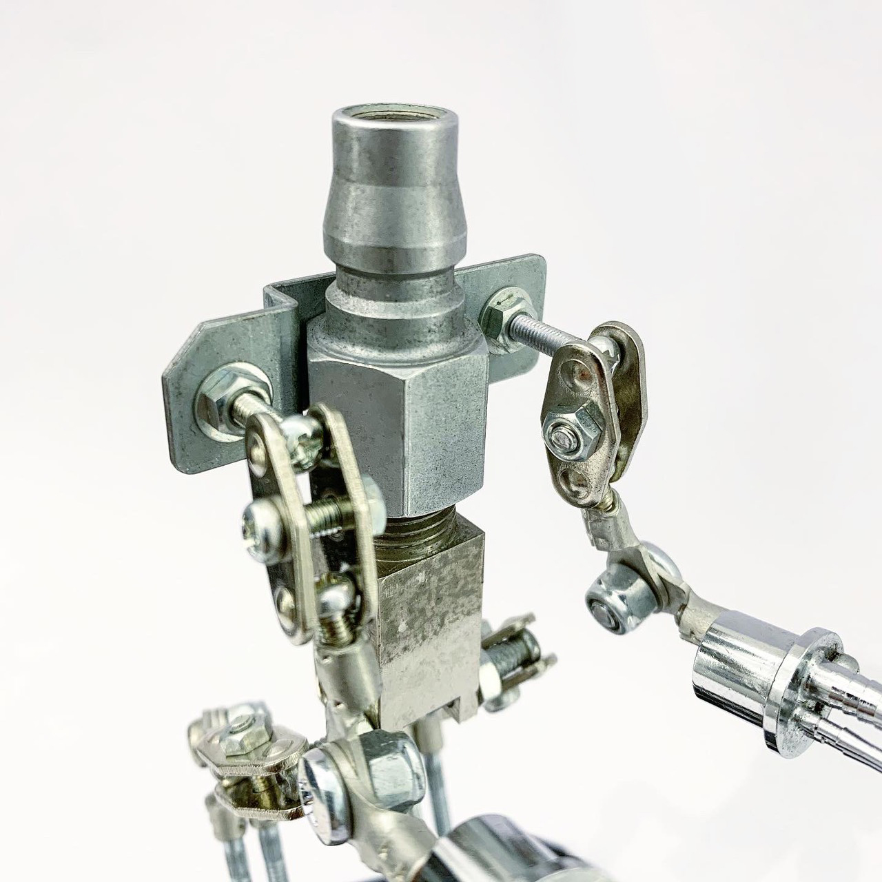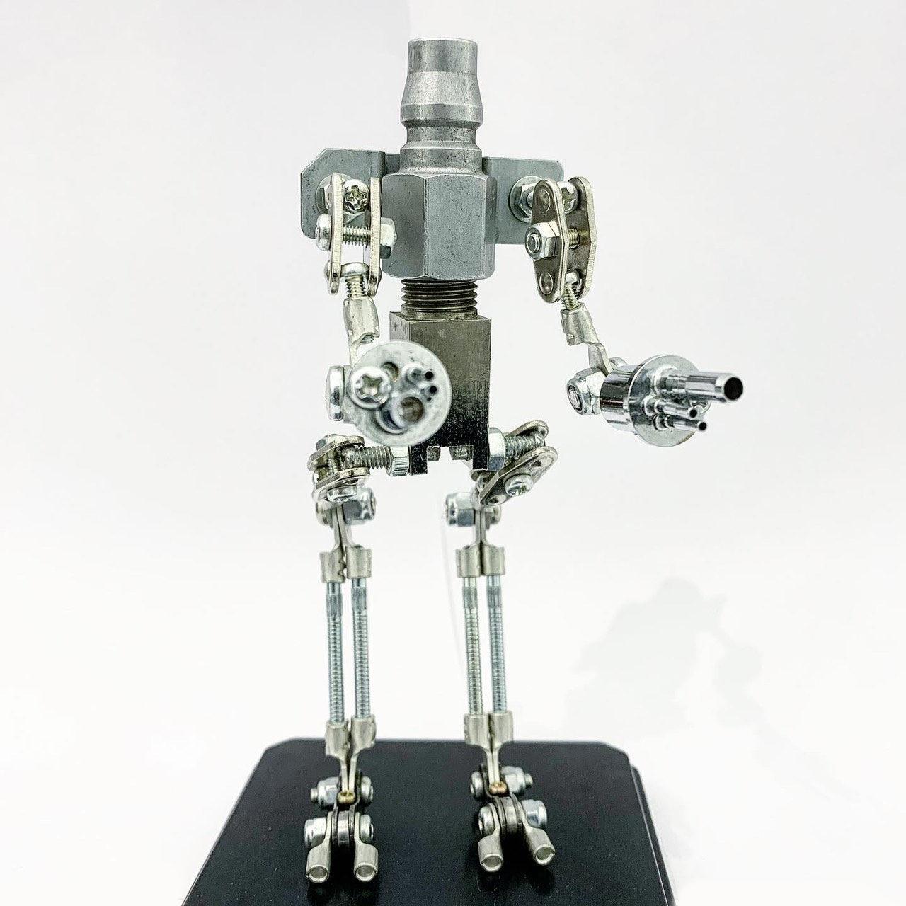 Shihirhira Daisuke使用工業和模型技術製作模型,不僅是外形,還包括內部結構。 所使用的零件是從一堆廢料中拾取的金屬零件,並且可以通過連接螺釘和螺母移動接縫,從而可以自由擺放姿勢。