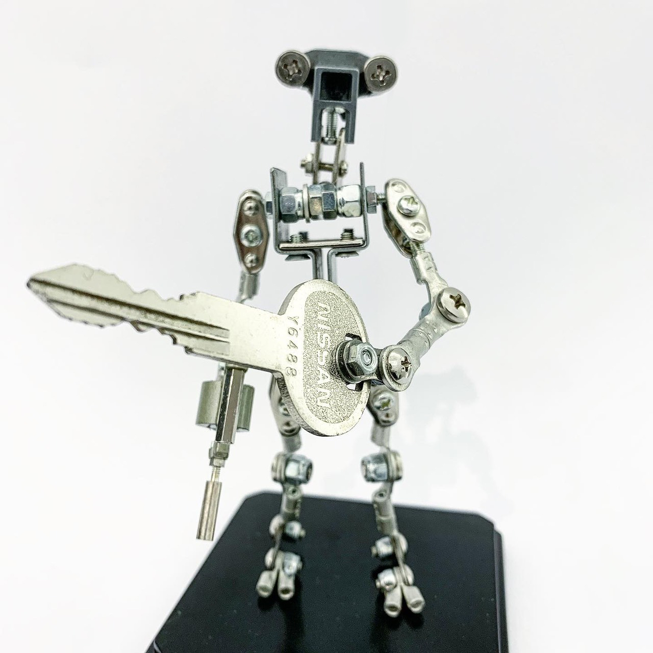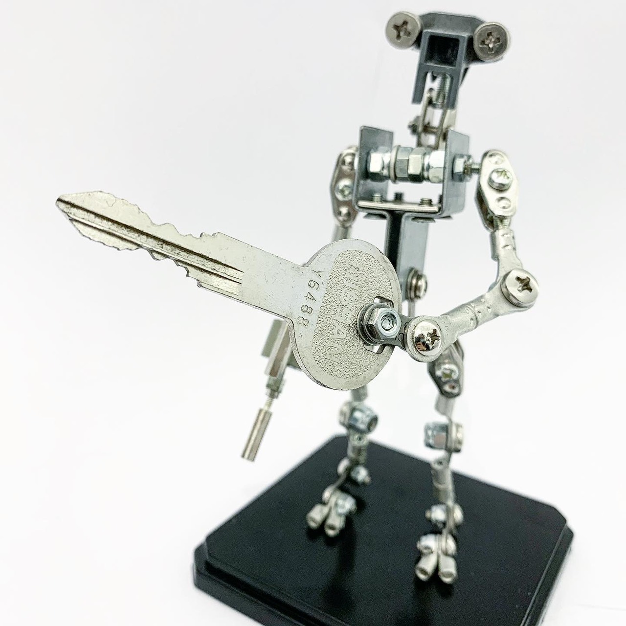 Shihirhira Daisuke使用工業和模型技術製作模型,不僅是外形,還包括內部結構。 所使用的零件是從一堆廢料中拾取的金屬零件,並且可以通過連接螺釘和螺母移動接縫,從而可以自由擺放姿勢。