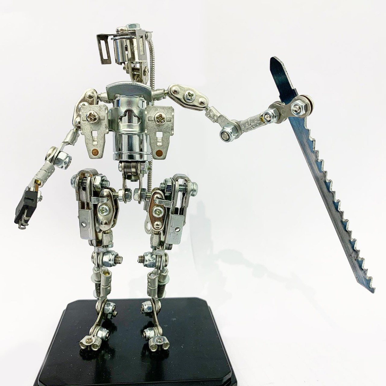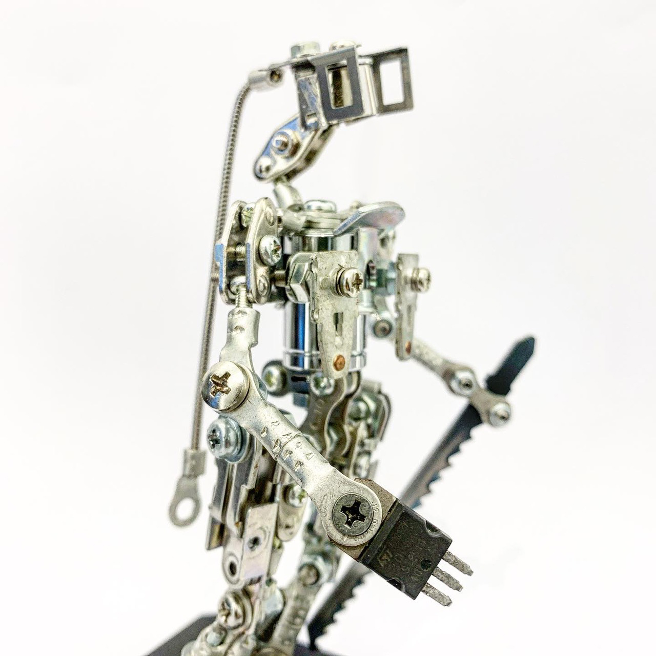 Shihirhira Daisuke使用工業和模型技術製作模型,不僅是外形,還包括內部結構。 所使用的零件是從一堆廢料中拾取的金屬零件,並且可以通過連接螺釘和螺母移動接縫,從而可以自由擺放姿勢。