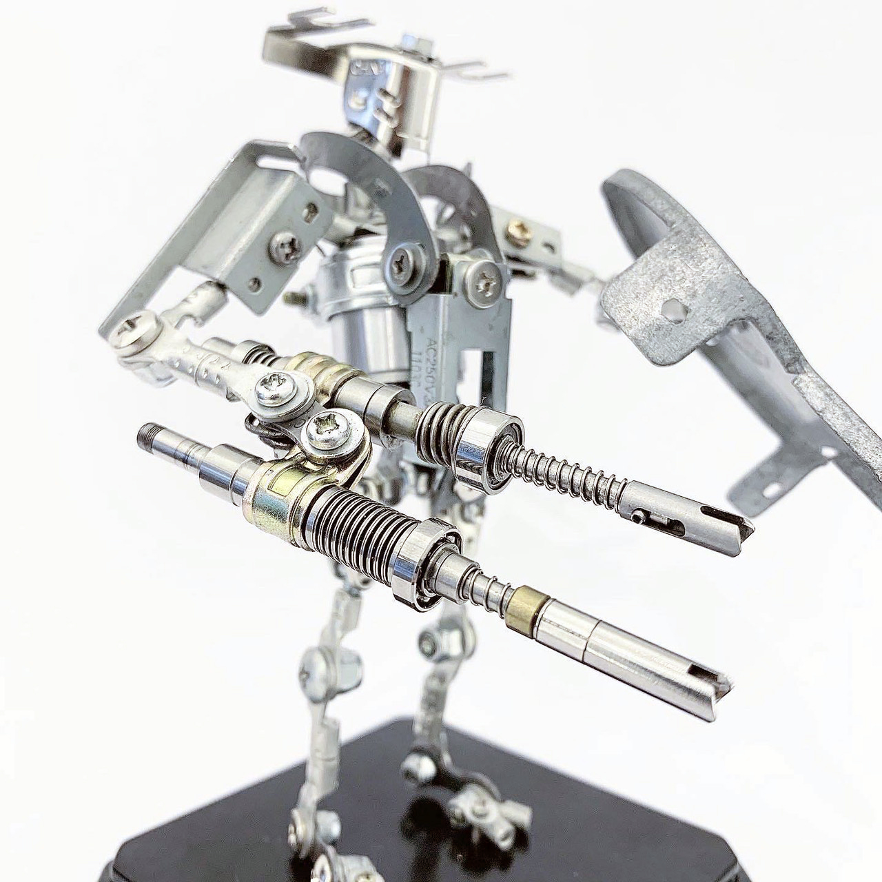 Shihirhira Daisuke使用工業和模型技術製作模型,不僅是外形,還包括內部結構。 所使用的零件是從一堆廢料中拾取的金屬零件,並且可以通過連接螺釘和螺母移動接縫,從而可以自由擺放姿勢。