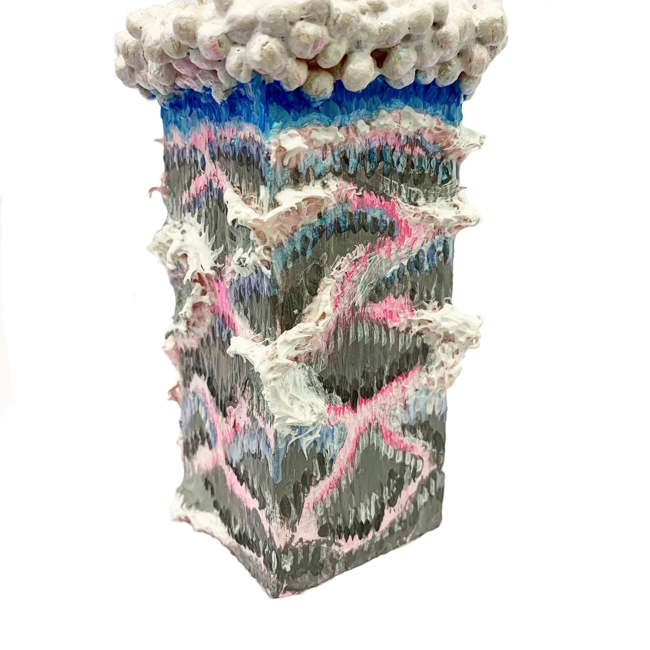 2014年開始在日本國內外藝術展場展出作品。媒材以輕質粘土為主,由樹脂粘土製成的三維作品以及通過記憶拼貼創造的生物。她接收現代日本的生活日常,並將其轉變為自己的世界並輸出。可愛和超現實主義並存,每個角色都展現了鮮明的特徵,投注入了藝術家天馬行空的創意和古靈精怪的靈魂。塑像創作上,還可以看見很鮮明的動態感線條,靜置於空間中,會發現整個空間活潑了起來,氛圍溫暖。作品反映了她生活萬象和內心感觸,帶領大家一窺她內心的小世界。