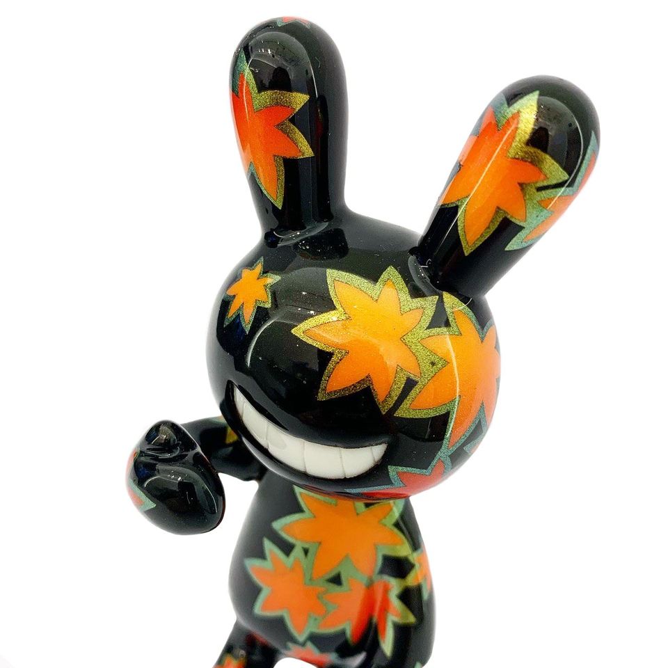 岩忠幸 Tadayuki Iwa ,2008年在新公司作為設計師開始個人活動,使用“高品質ART TOY”概念生產了BLACKRABBiT的各種變體,設計出各式各樣不同形態的BLAKRABBIT。他為玩具上色的噴漆塗料技術極為精湛,讓許多設計師爭相與他合作。 ✧ 底座有藝術家簽名