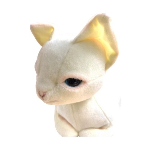 土屋仁應 Yoshimasa Tsuchiya,運用大學所學的傳統佛像雕刻技法創作動物以及神獸的雕刻作品,雕刻作品的眼睛皆是用水晶或是琉璃珠鑲而成,作品柔和、靜謐而又充滿了靈性。 此件「香箱貓」是由他的木雕創作所衍生,特別授權製作的稀有「軟雕塑」,雙眼瞳色相異,極具收藏價值。