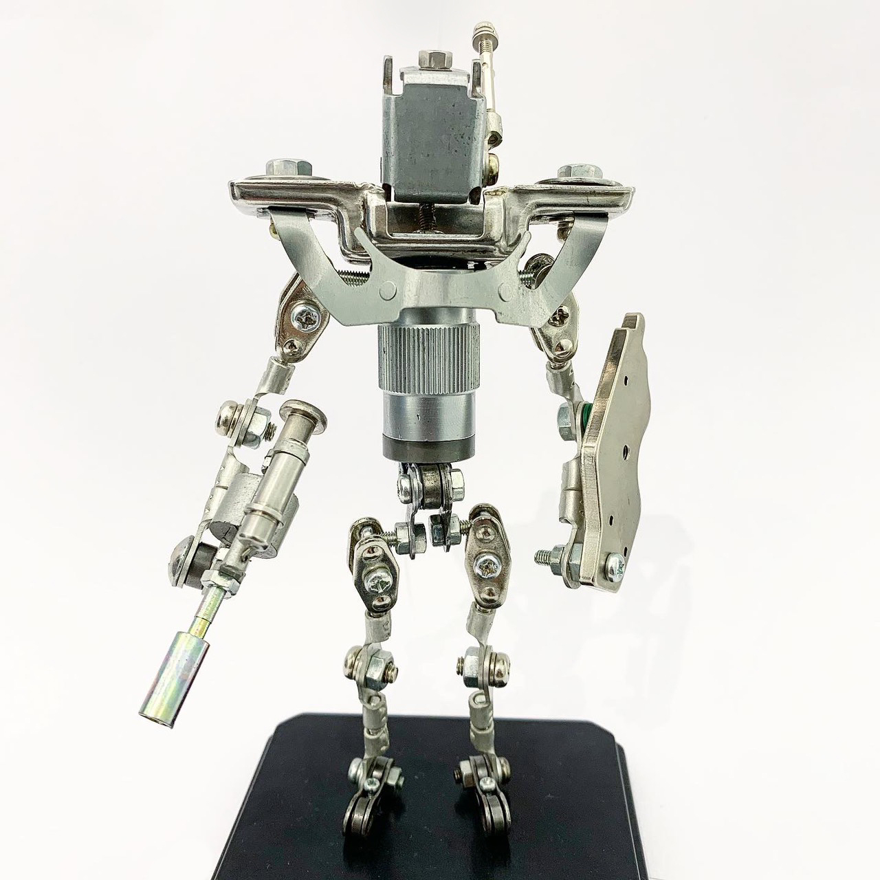 Shihirhira Daisuke使用工業和模型技術製作模型,不僅是外形,還包括內部結構。 所使用的零件是從一堆廢料中拾取的金屬零件,並且可以通過連接螺釘和螺母移動接縫,從而可以自由擺放姿勢。