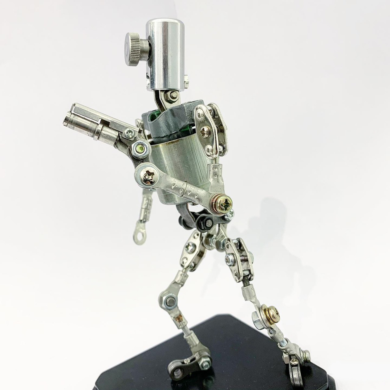 Shihirhira Daisuke使用工業和模型技術製作模型,不僅是外形,還包括內部結構。 所使用的零件是從一堆廢料中拾取的金屬零件,並且可以通過連接螺釘和螺母移動接縫,從而可以自由擺放姿勢。