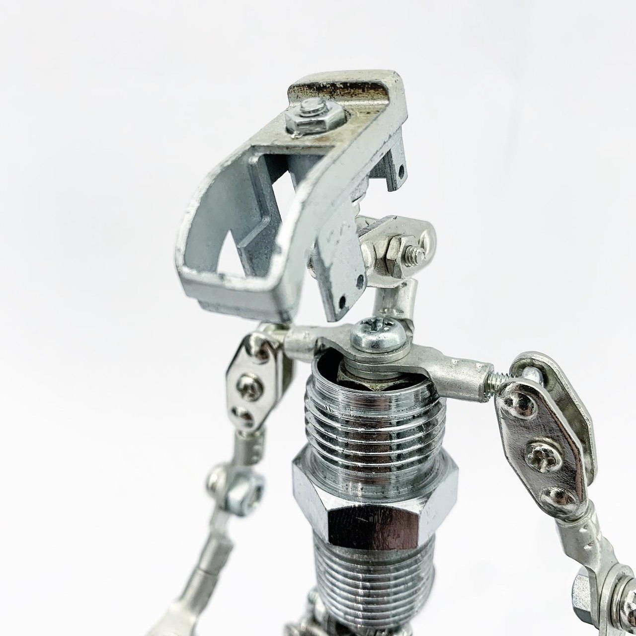 Shihirhira Daisuke使用工業和模型技術製作模型,不僅是外形,還包括內部結構。 所使用的零件是從一堆廢料中拾取的金屬零件,並且可以通過連接螺釘和螺母移動接縫,從而可以自由擺放姿勢。