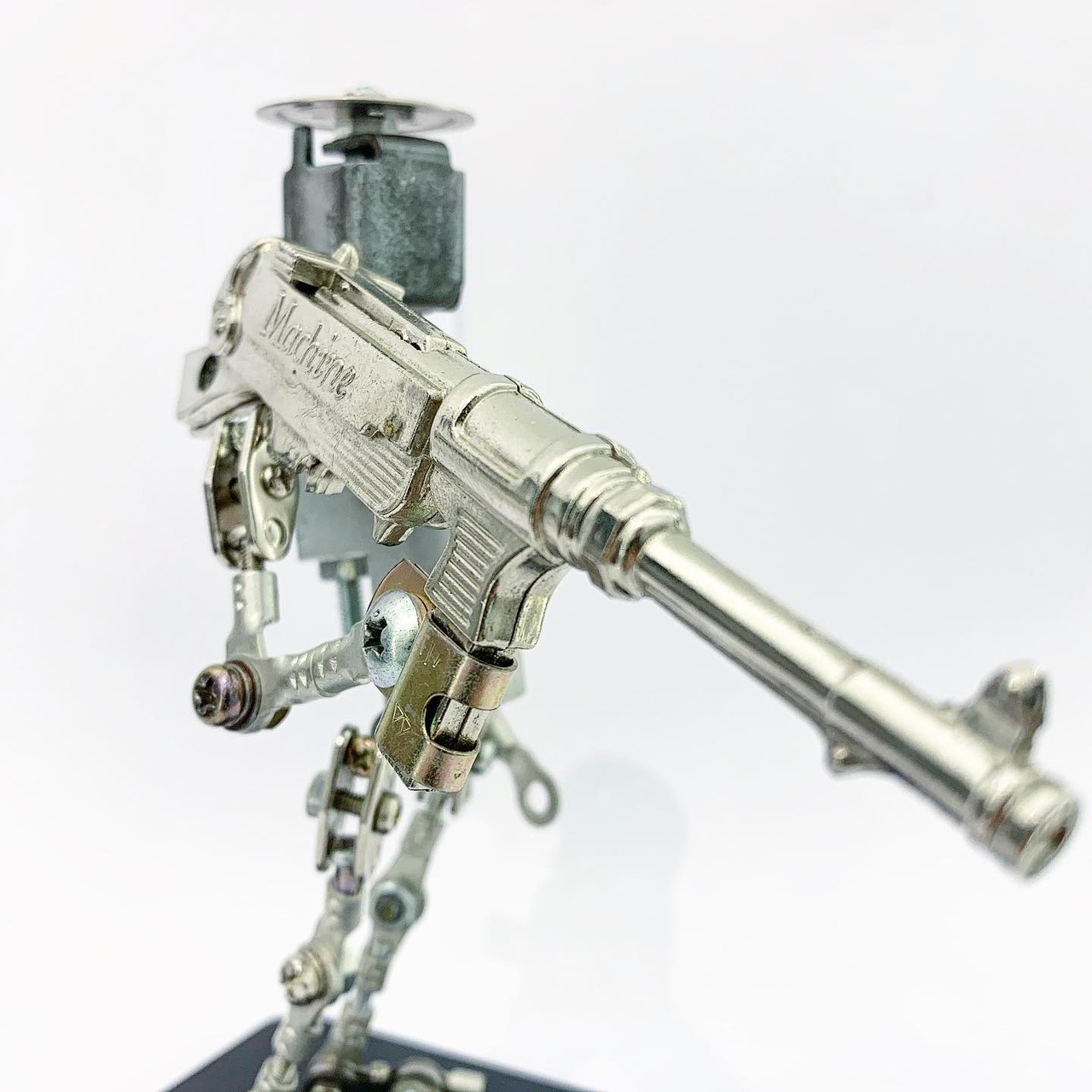 Shihirhira Daisuke使用工業和模型技術製作模型,不僅是外形,還包括內部結構。 所使用的零件是從一堆廢料中拾取的金屬零件,並且可以通過連接螺釘和螺母移動接縫,從而可以自由擺放姿勢。