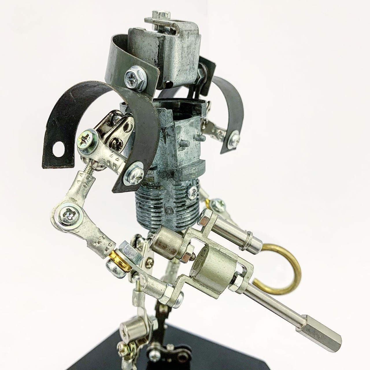 Shihirhira Daisuke使用工業和模型技術製作模型,不僅是外形,還包括內部結構。 所使用的零件是從一堆廢料中拾取的金屬零件,並且可以通過連接螺釘和螺母移動接縫,從而可以自由擺放姿勢。