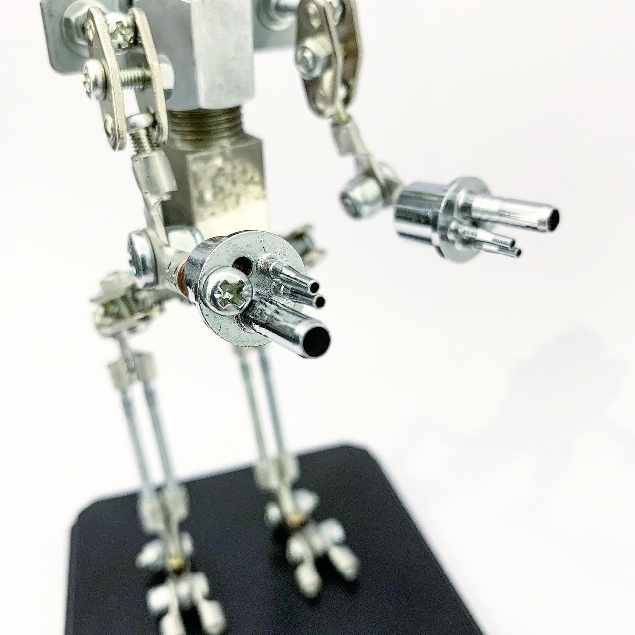 Shihirhira Daisuke使用工業和模型技術製作模型,不僅是外形,還包括內部結構。 所使用的零件是從一堆廢料中拾取的金屬零件,並且可以通過連接螺釘和螺母移動接縫,從而可以自由擺放姿勢。