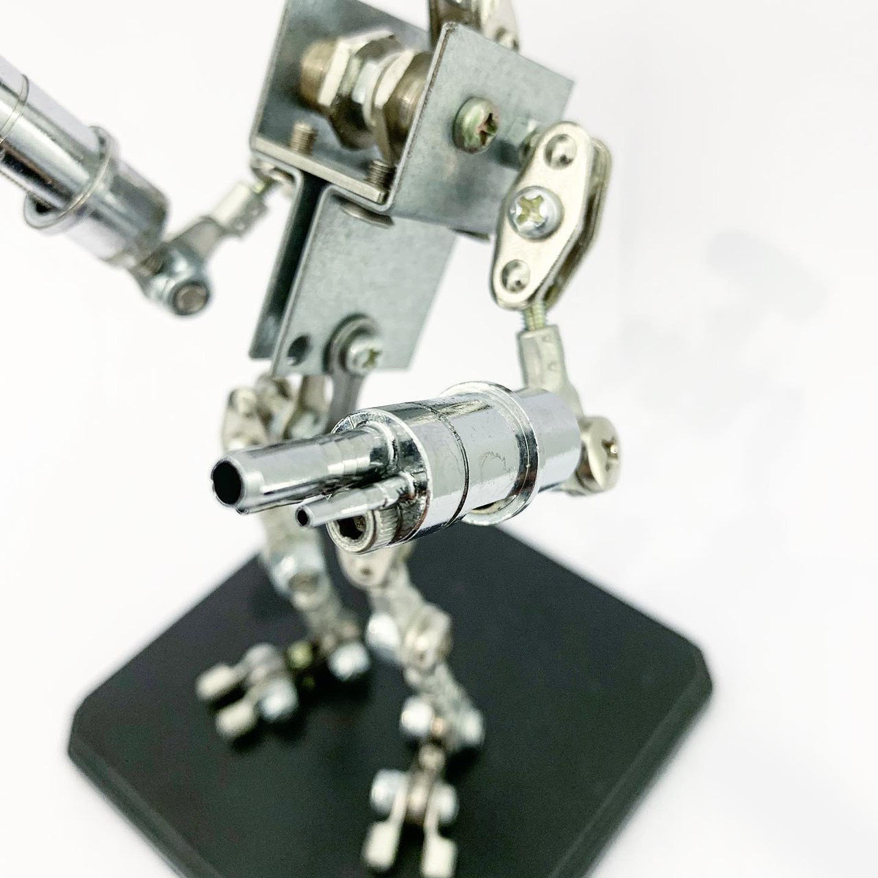 Shihirhira Daisuke使用工業和模型技術製作模型,不僅是外形,還包括內部結構。 所使用的零件是從一堆廢料中拾取的金屬零件,並且可以通過連接螺釘和螺母移動接縫,從而可以自由擺放姿勢。