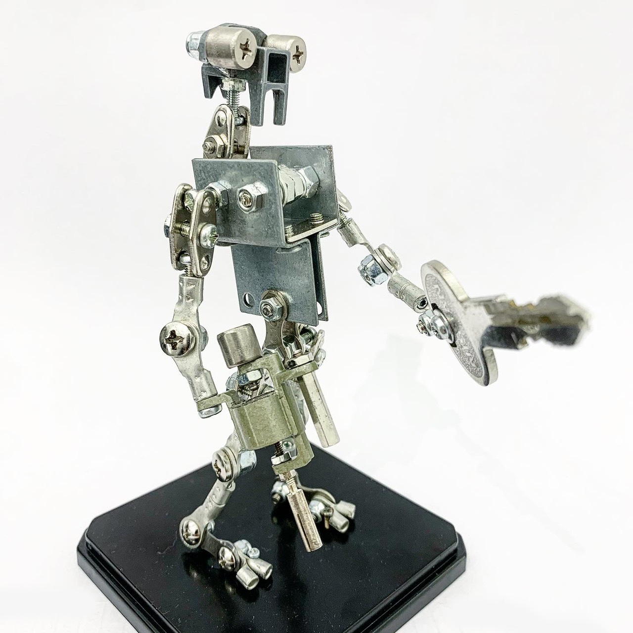 Shihirhira Daisuke使用工業和模型技術製作模型,不僅是外形,還包括內部結構。 所使用的零件是從一堆廢料中拾取的金屬零件,並且可以通過連接螺釘和螺母移動接縫,從而可以自由擺放姿勢。