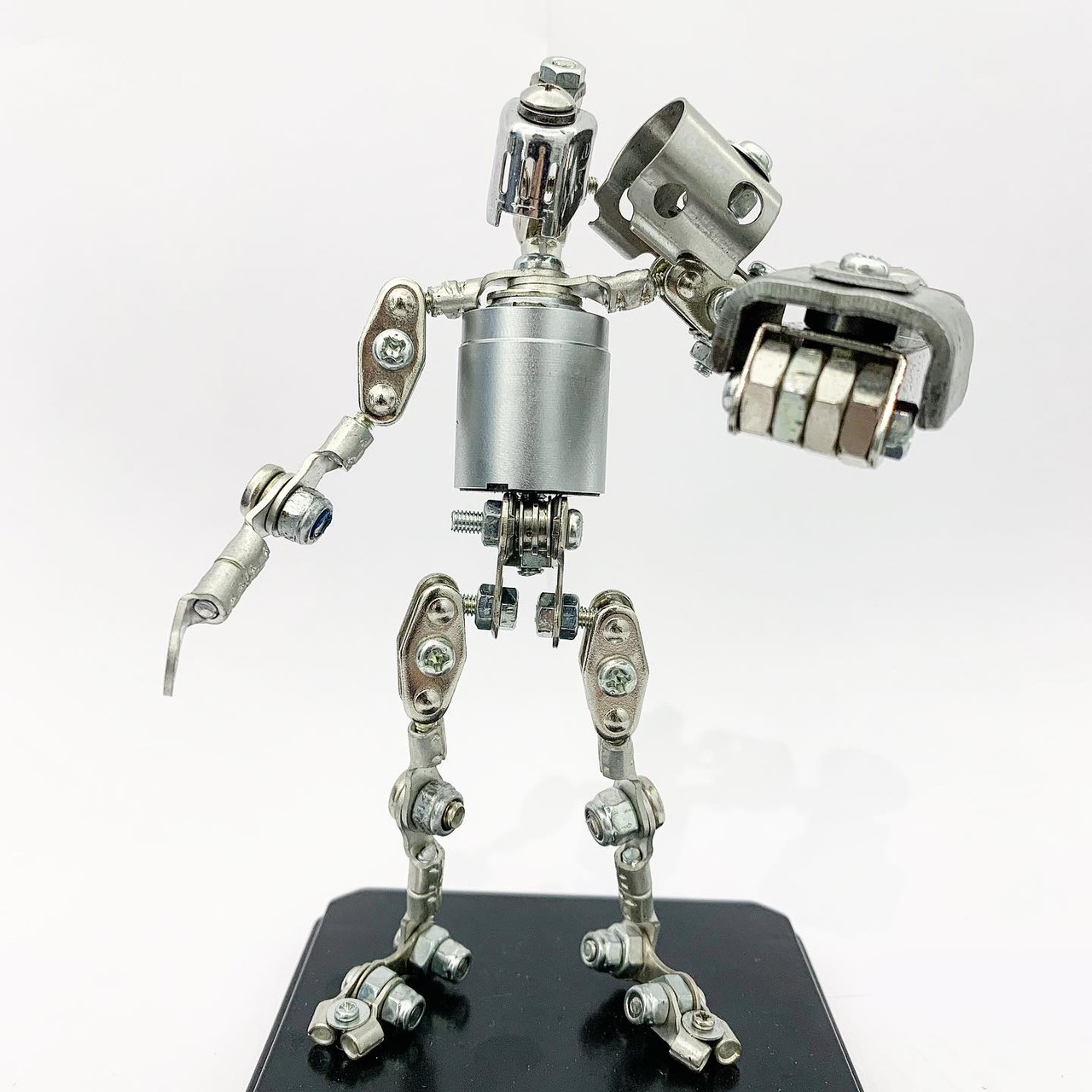 Shihirhira Daisuke使用工業和模型技術製作模型,不僅是外形,還包括內部結構。 所使用的零件是從一堆廢料中拾取的金屬零件,並且可以通過連接螺釘和螺母移動接縫,從而可以自由擺放姿勢。