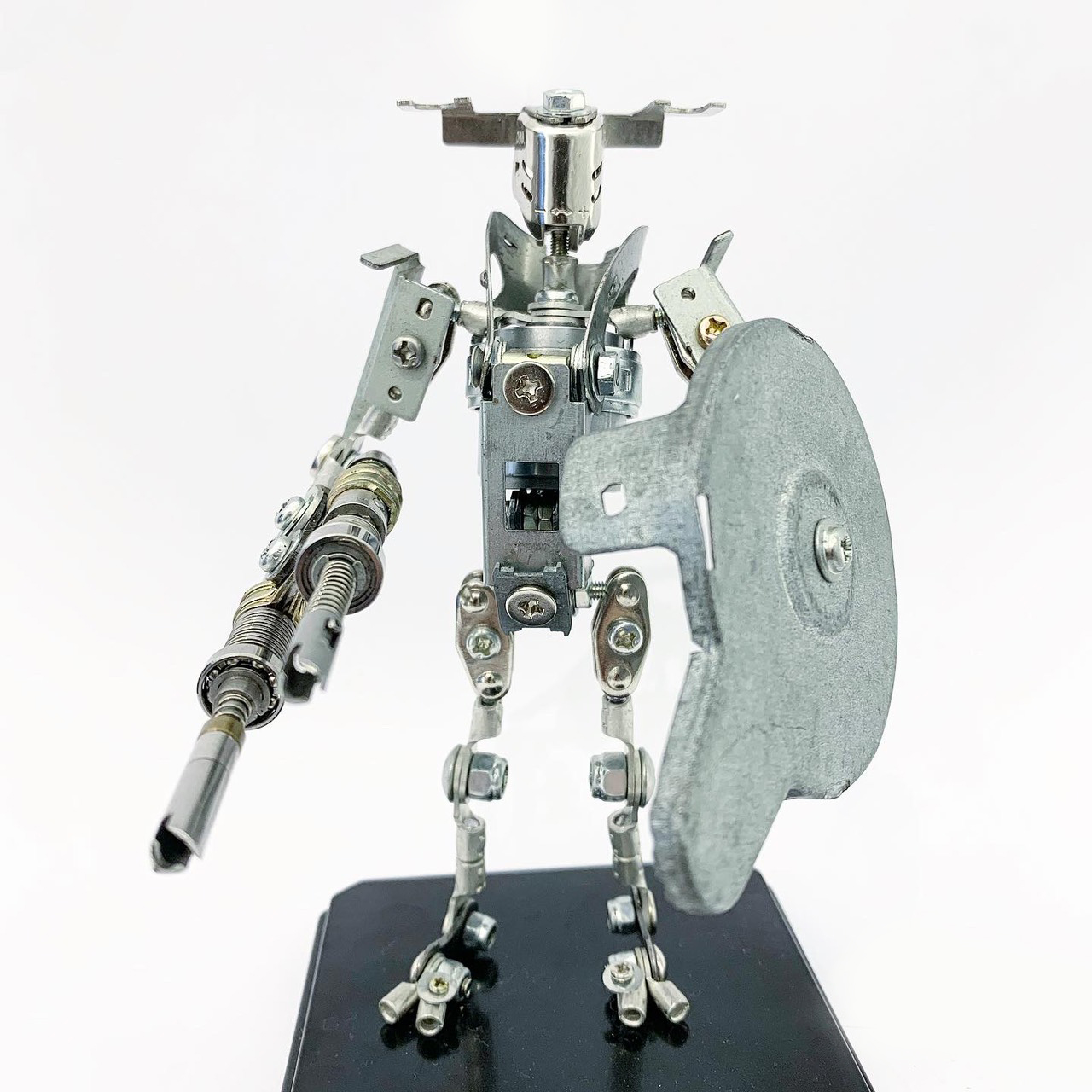 Shihirhira Daisuke使用工業和模型技術製作模型,不僅是外形,還包括內部結構。 所使用的零件是從一堆廢料中拾取的金屬零件,並且可以通過連接螺釘和螺母移動接縫,從而可以自由擺放姿勢。