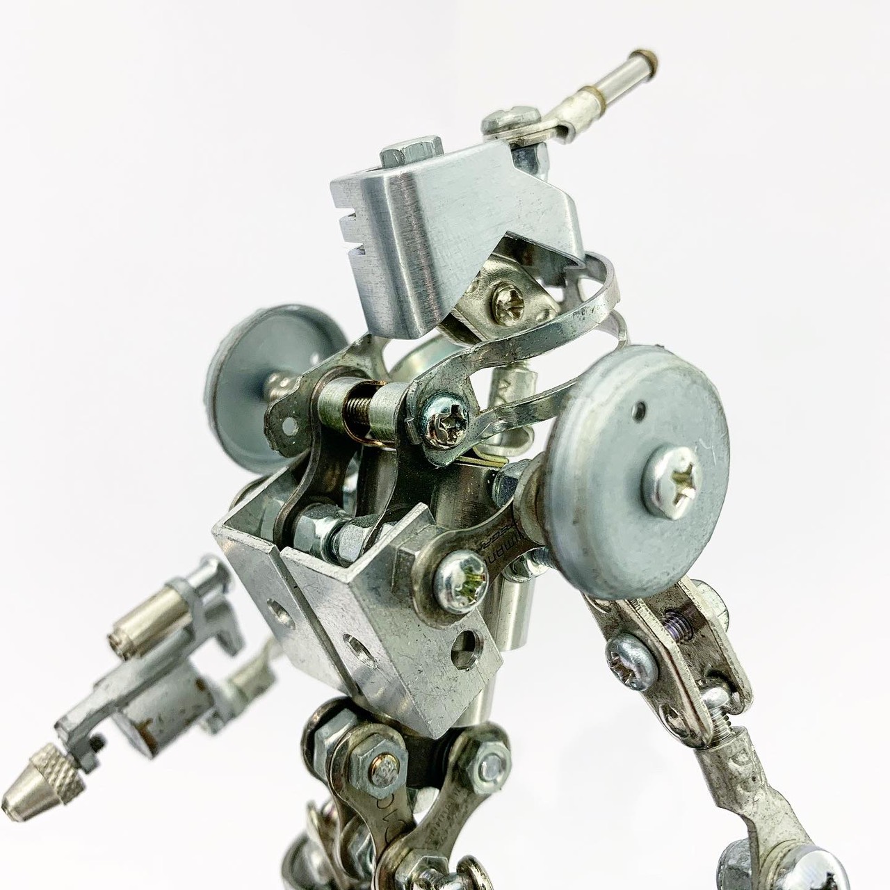 Shihirhira Daisuke使用工業和模型技術製作模型,不僅是外形,還包括內部結構。 所使用的零件是從一堆廢料中拾取的金屬零件,並且可以通過連接螺釘和螺母移動接縫,從而可以自由擺放姿勢。