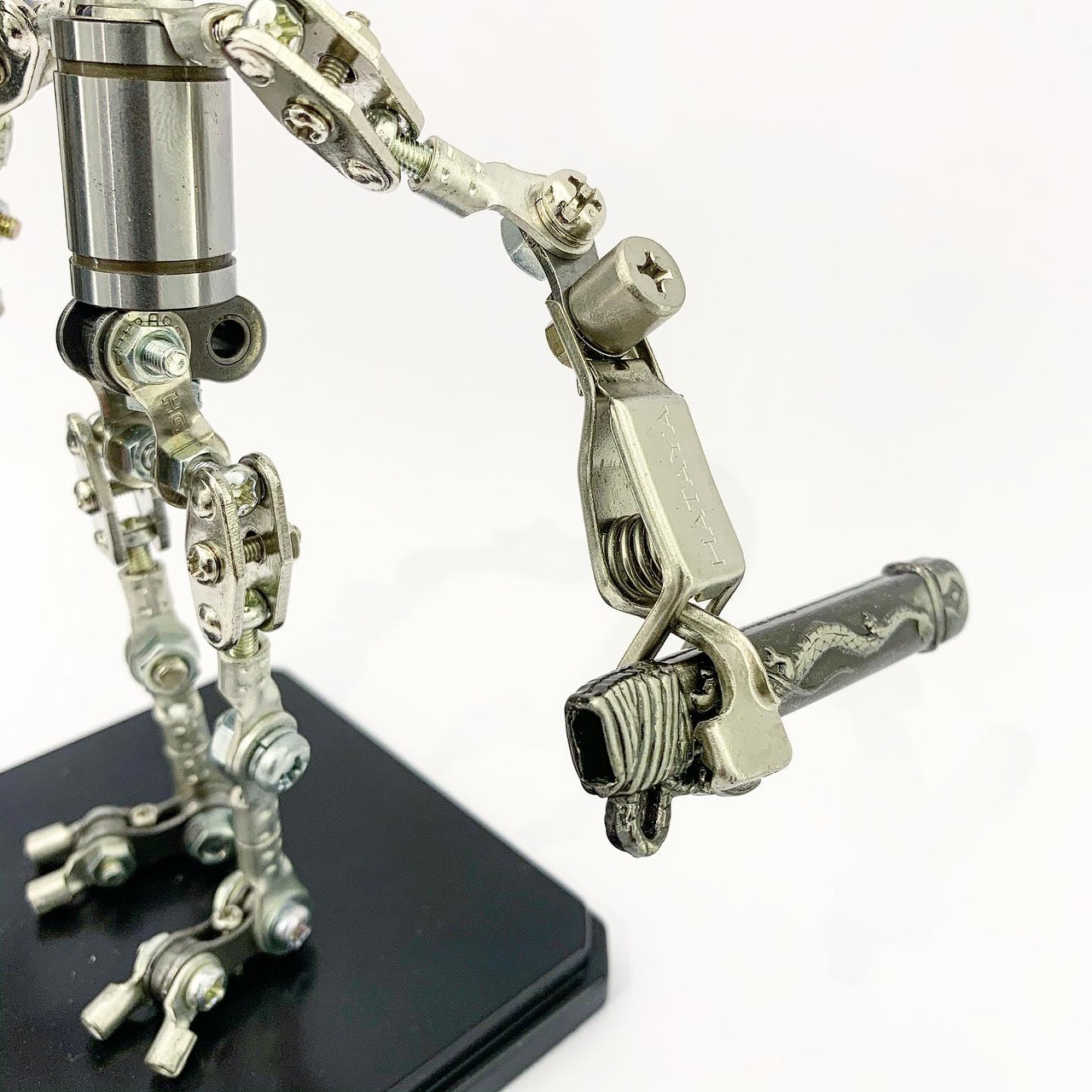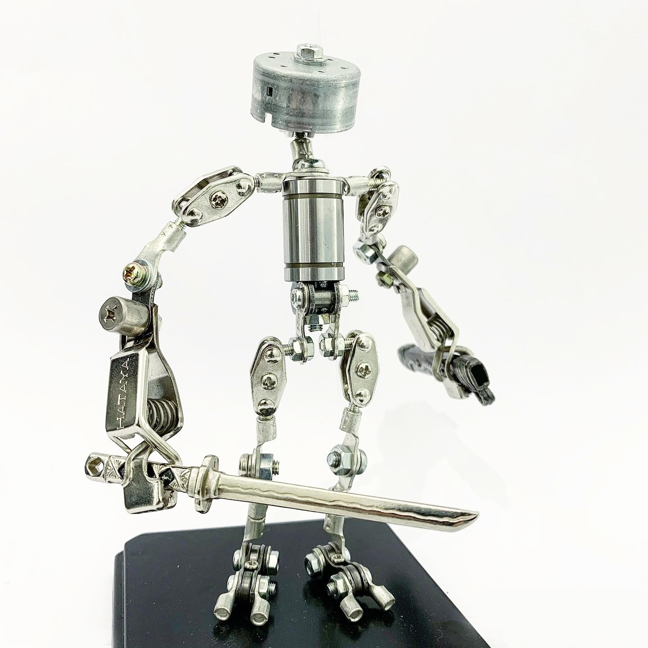 Shihirhira Daisuke使用工業和模型技術製作模型,不僅是外形,還包括內部結構。 所使用的零件是從一堆廢料中拾取的金屬零件,並且可以通過連接螺釘和螺母移動接縫,從而可以自由擺放姿勢。