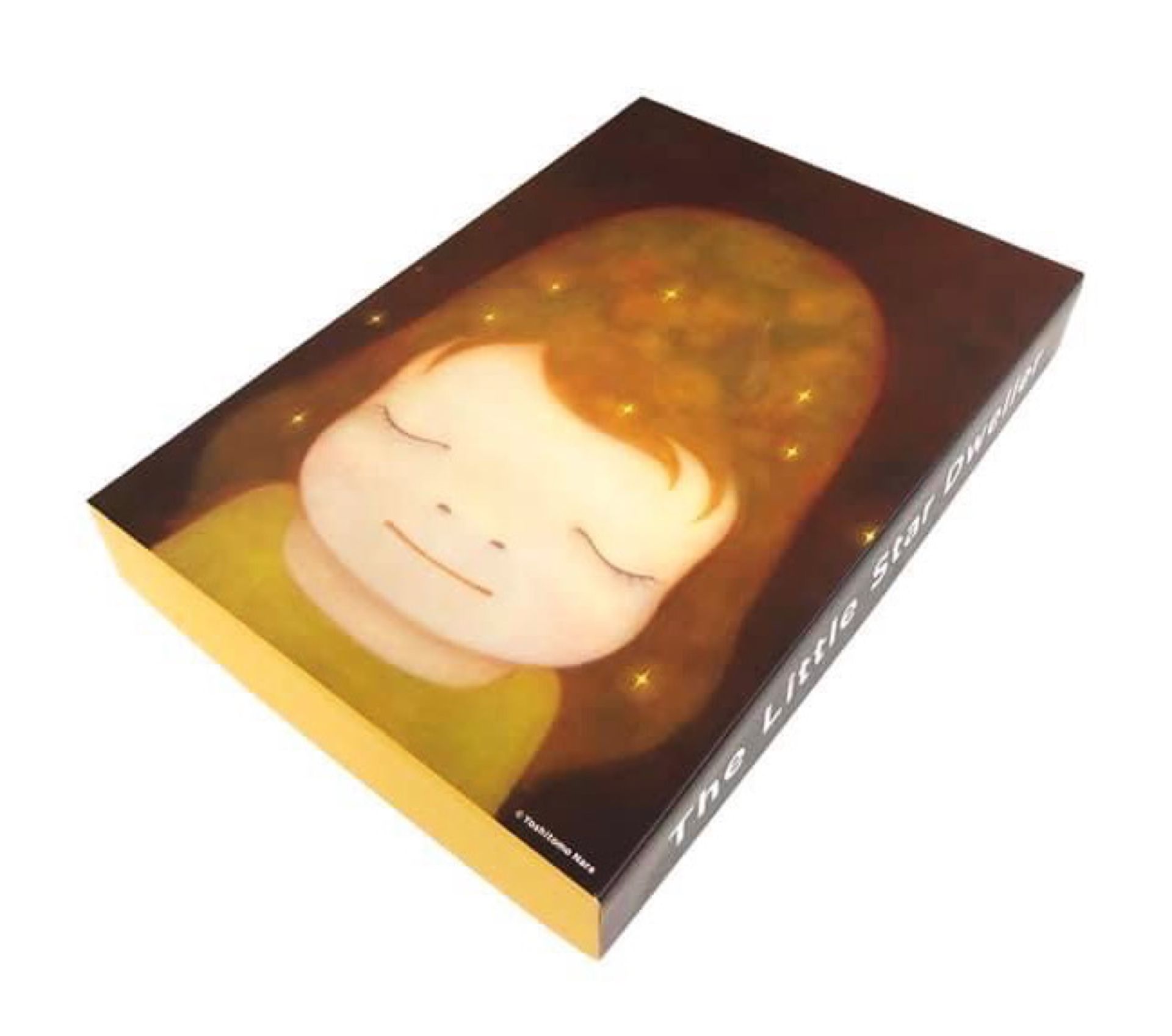 奈良美智Yoshitomo Nara,以一幅1.95億港幣成交的⟪背後藏刀⟫,躍升日本最貴藝術家。兒童肖像為主要創作題材,有著誇張大眼的孩童,或斜眼睥睨帶著憤怒,或閉上雙眼露出祥和面容,純真外表下總藏有黑暗、耐人尋味的一面。 原作⟪Little Star Dweller⟫創作於2006年,尺寸227.3 x 181.3 cm,2015佳士得拍賣成交價USD 3,413,000。畫中描繪一名頭上閃爍點點繁星的兒童,甜美外表下帶有淡淡憂鬱,寧靜的面容之下是對孤獨的詮釋,也反映了奈良美智獨立成長的童年經驗。